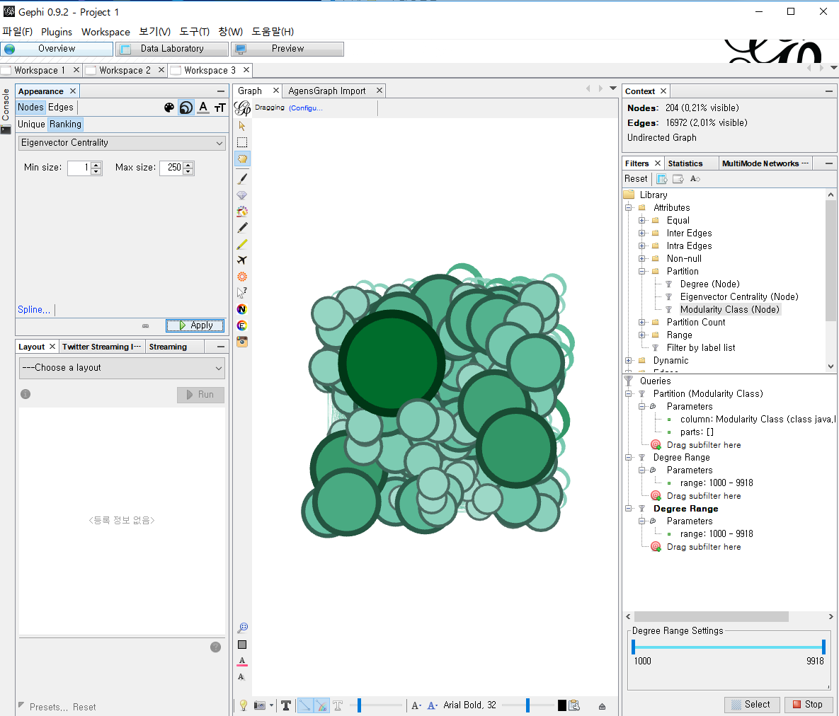 Gephi를 조작하여 언론데이터를 필터링하고 분석해보자