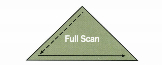 수직적 탐색 없이 인덱스 리프 블록을 처음부터 끝까지 수평적으로 탐색하는 방식